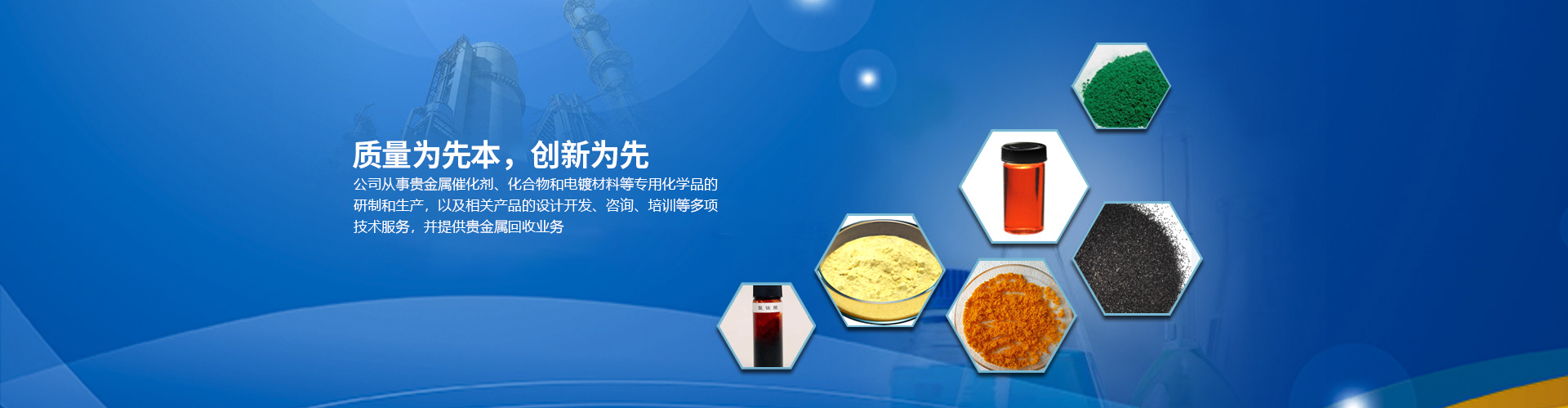 目前公司的主要產(chǎn)品有:醋酸鈀、氯化鈀、硝酸鈀、硫酸鈀、氯鉑酸、反-二(三苯基膦)二氯化鈀、四(三苯基膦)鈀、乙酰丙酮鈀;三氯化銠、辛酸銠、碘化銠、硝酸銠、醋酸銠、三苯基膦氯化銠、三苯基膦乙酰丙酮羰基銠、三苯基膦氯化銠、乙酰丙酮二羰基銠等,廣泛應用于藥物合成、石油化工、精細化工和電鍍領域。本公司對所有產(chǎn)品進行嚴格檢測從定量和定性方面嚴把質量關,并通過ISO90001質量體系認證。